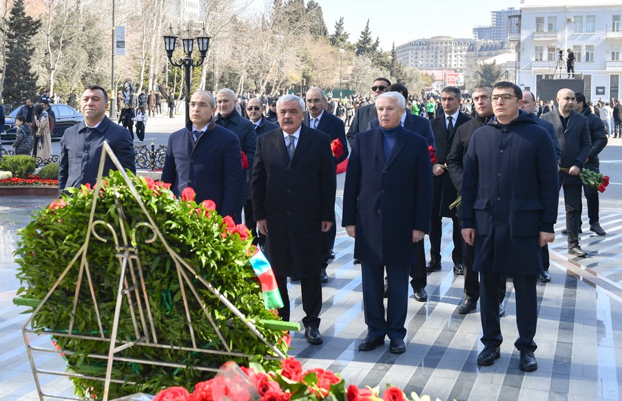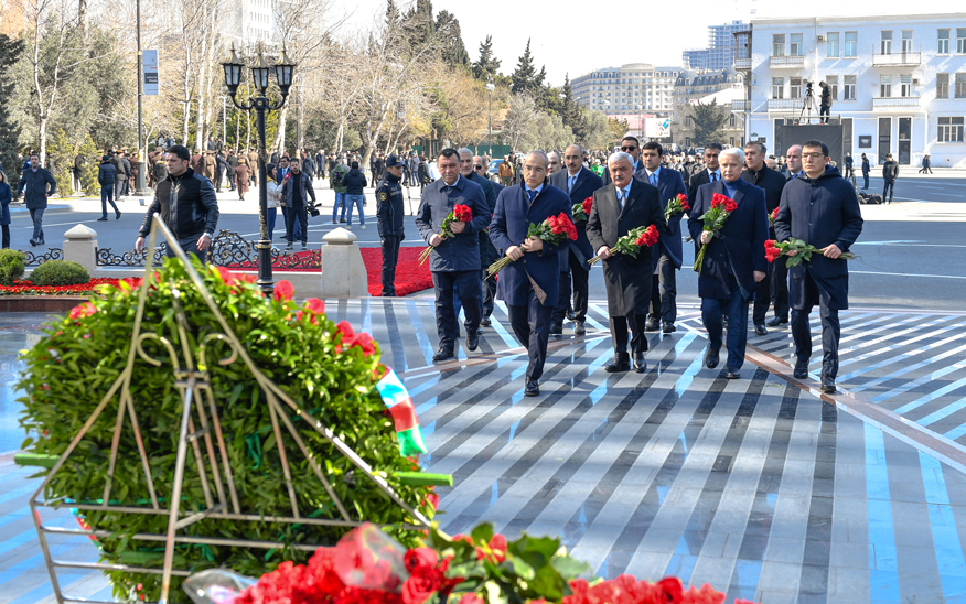 Faciə qurbanlarının xatirəsi ehtiramla yad edilib, abidə önünə gül dəstələri qoyulub.