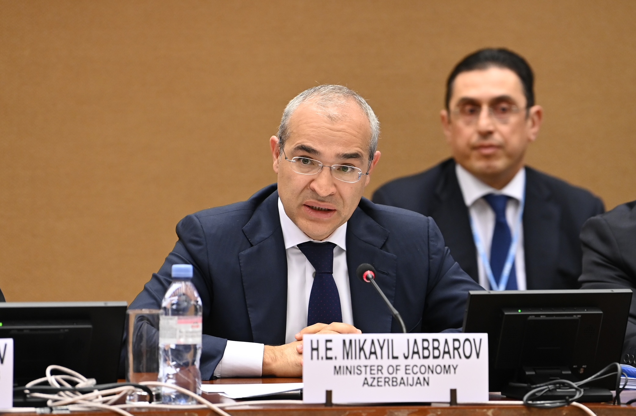 İqtisadiyyat naziri Azərbaycanın iqtisadi uğurları barədə də məlumat verib. Qeyd edilib ki, işğaldan azad edilmiş ərazilərdə genişmiqyaslı reabilitasiya və bərpa işlərinin aparılması, bu ərazilərin ekoloji cəhətdən təmiz texnologiyalar əsasında yenidən qurulması istiqamətində tədbirlər həyata keçirilir. "Ağıllı" və “yaşıl” yanaşmalardan istifadə etməklə, 2050-ci ilə qədər “sıfır emissiya” zonalarının yaradılması nəzərdə tutulur.