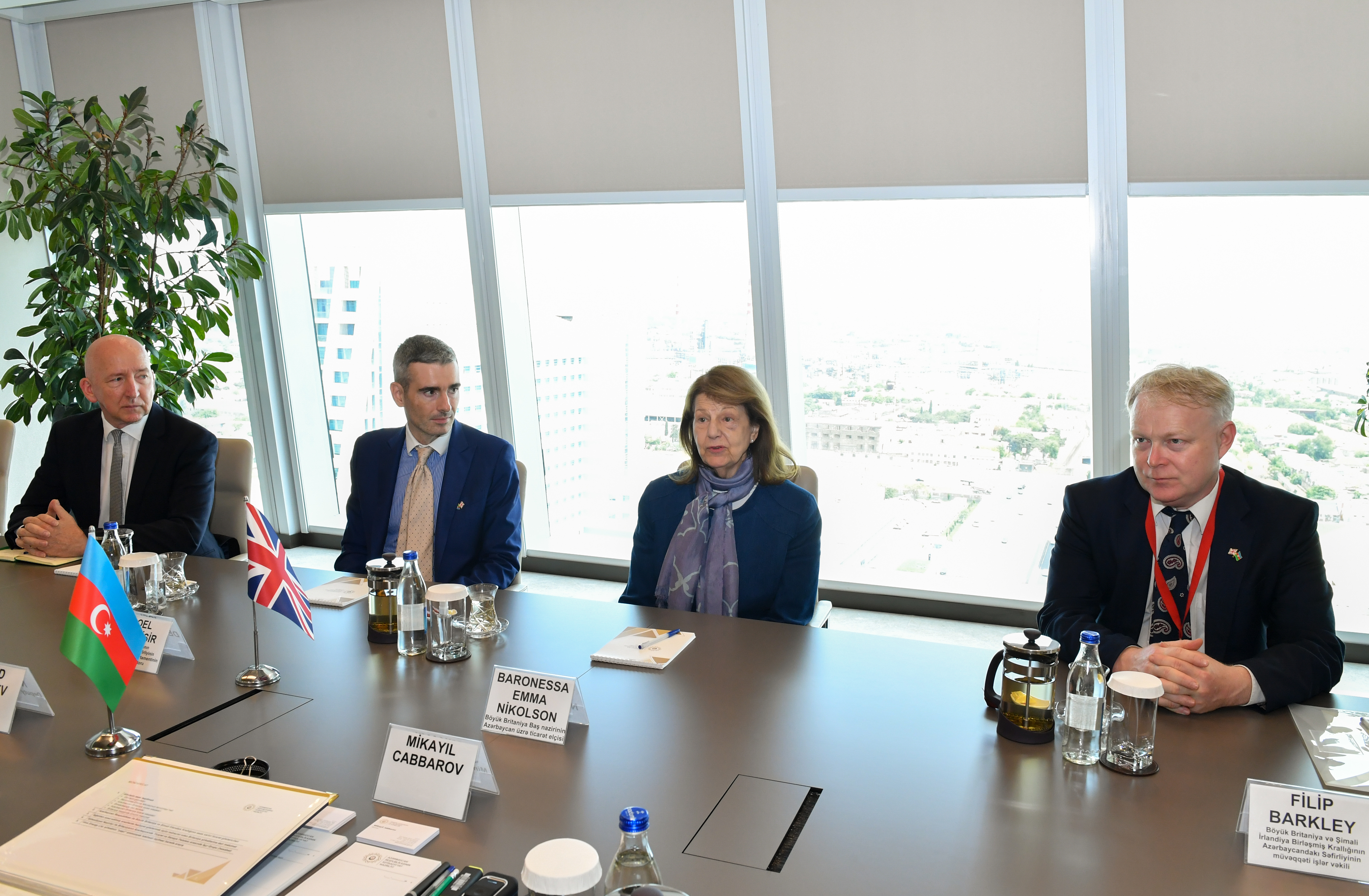 Baronessa Emma Nikolson ölkəsinin Azərbaycanla iqtisadi-ticarət əlaqələrin inkişafında maraqlı olduğunu, yeni əməkdaşlıq sahələrini qeyd edib. Tərəflər energetika sahəsində reallaşdırılan layihələr, İqtisadiyyat Nazirliyi ilə Britaniyanın Azərbaycanda Ticarət Palatası arasında işçi qrupunun yaradılması, Böyük Britaniya şirkətlərinin işğaldan azad edilmiş ərazilərimizdə həyata keçirilən layihələrdə iştirakı məsələləri ətrafında fikir mübadiləsi aparıblar.